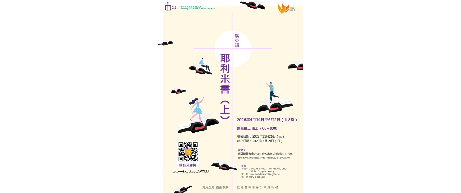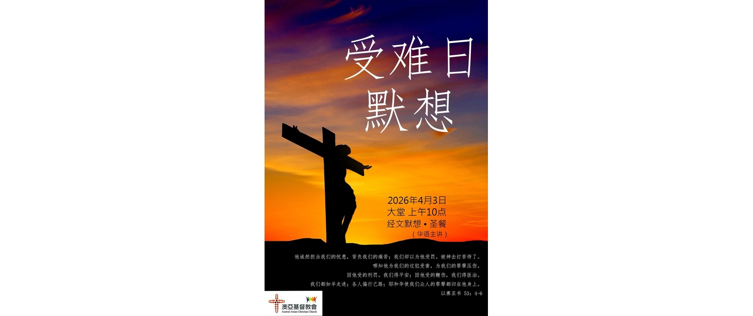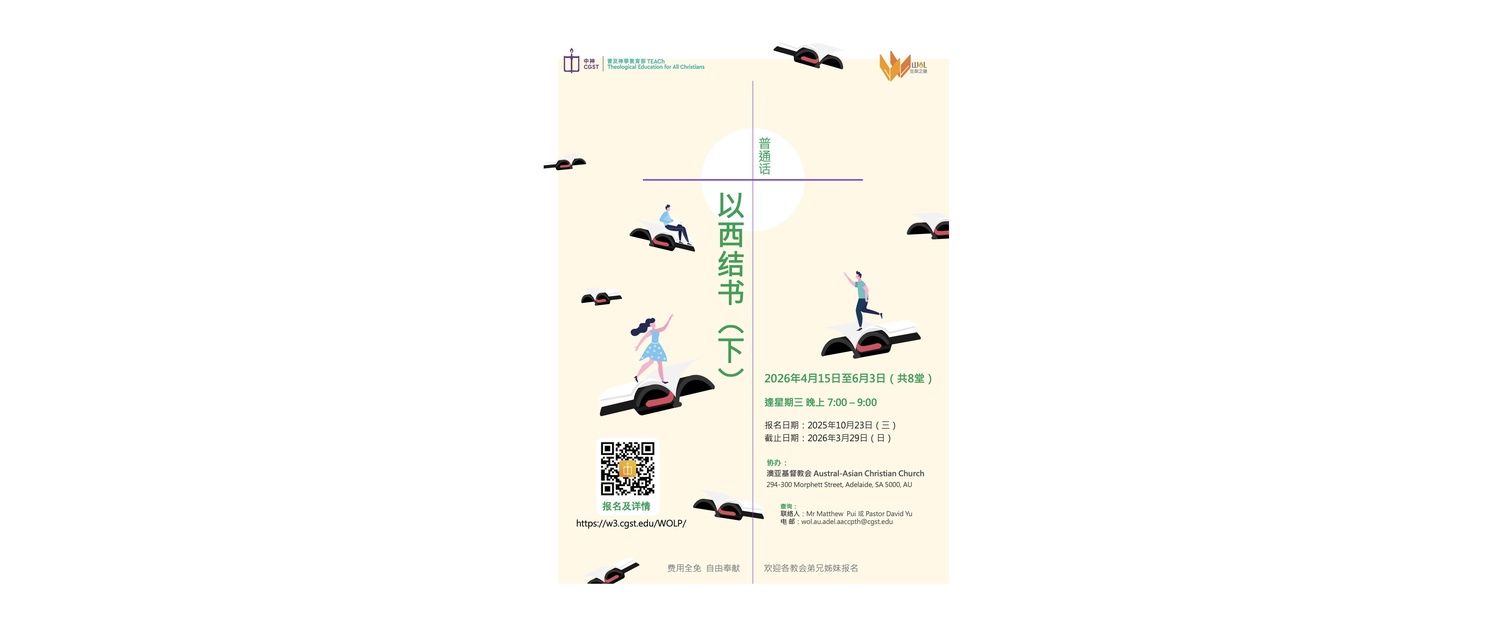 今週禱告事項1.為本週五、六晚的宣教培靈會,以及下主日的生命之道培靈會禱告。求主大大使用這些聚會造就信徒靈命,並加力幫助講員。 2.為正影響全球的中東戰火禱告。求掌管歷史及人心的主平息地上一切的紛亂,也叫人心在罪中回轉,仰望並遵行祂的旨意。