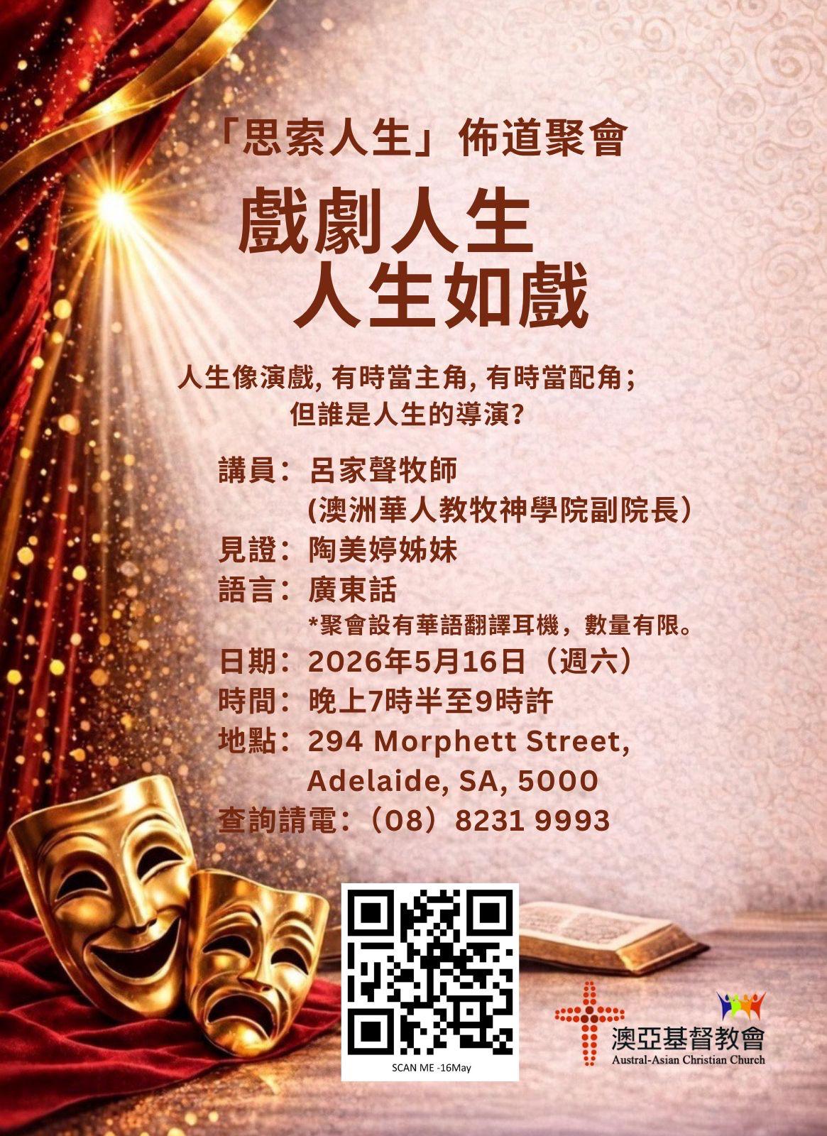 「思索人生」佈道聚會 – 戲劇人生 人生如戲